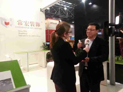 2月19日,常宏裝飾赴德國參加杜塞爾多夫零售業(yè)展覽會已是第四天,幾日來,我們前方參加展會的同事不斷為我們報道展會的新消息,傳來最新的展會照片。創(chuàng)辦于1966年的杜塞爾多夫零售業(yè)展覽會(Euroshop)是全球規(guī)模和影響力最大的零售業(yè)、廣告業(yè)和展裝業(yè)綜合博覽會,此次常宏裝飾參展,更是將"常宏裝飾"這一品牌進一步推向世界的重要舉措之一。今日,常宏裝飾總經(jīng)理王躍先生在展會現(xiàn)場接受了德國主辦方的采訪,將常宏裝飾以及常宏文化、經(jīng)營優(yōu)勢、經(jīng)營理念等更全面的介紹推廣,使“常宏裝飾”被世界認知。