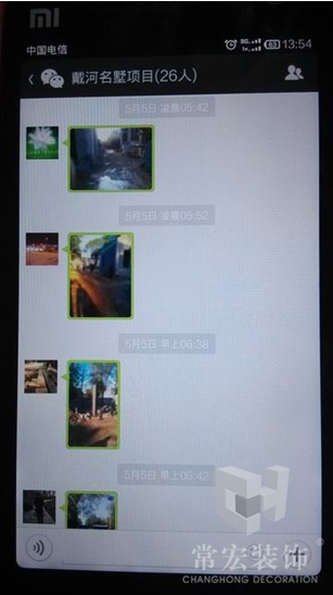 在項目部臨時租住的房屋內(nèi),項目管理班子成員開始準備一天的工作程序。到現(xiàn)場在微信群里發(fā)個現(xiàn)場截圖,同時與工人一起解決各種問題。跟工人一起在施工現(xiàn)場勞作的好處是,在工人施工的第一個節(jié)點便能告訴其施工的正確與否,可避免和改善了因工序做錯而造成的