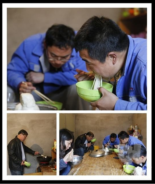 勞累了一上午,工人們終于可以休息休息吃個熱乎乎的中午飯了。因為在別墅區(qū)又沒有到北戴河的旺季所以周圍沒有什么小餐館或外賣,大家只能自己動手豐衣足食了。熱乎乎的面條和饅頭,吃飽管夠。