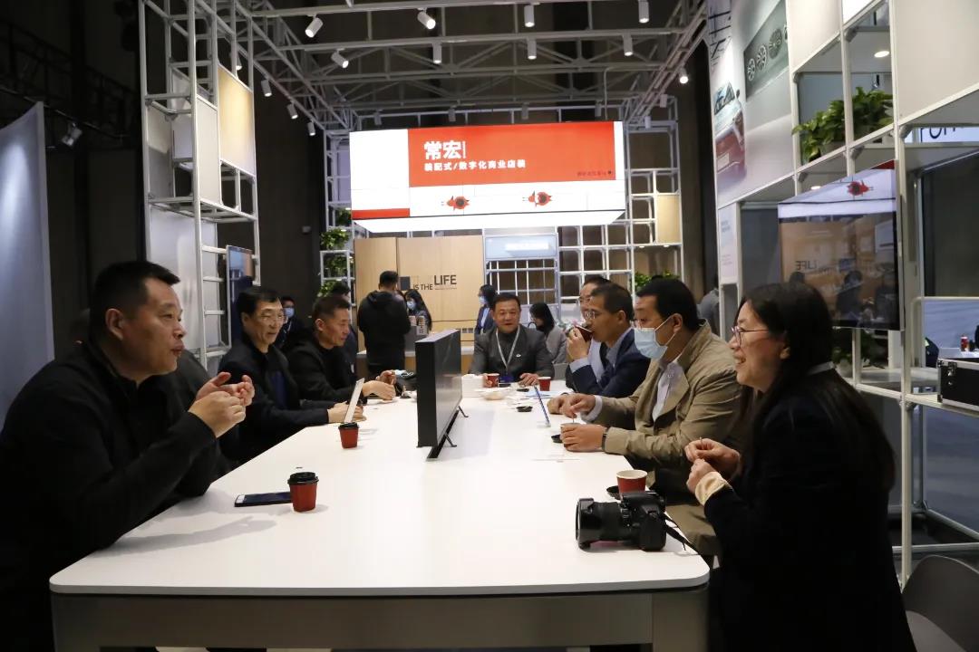 河北省風(fēng)景園林學(xué)會副理事長兼規(guī)劃設(shè)計委員會主任鄭占峰先生、雄安城市規(guī)劃設(shè)計研究院總工程師夏雨女士、河北省工業(yè)設(shè)計協(xié)會秘書長于俊卯先生、河北省建筑科學(xué)研究院副院長邊智慧先生、孫錚室內(nèi)設(shè)計工作室設(shè)計總監(jiān)孫錚先生、蕉林・茶書屋創(chuàng)始人張迎軍先生、格藝晟景觀總經(jīng)理趙紅女士等一行到訪常宏展位。