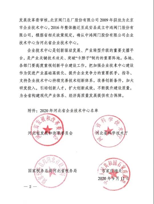 河北省發(fā)展和改革委員會、河北省科學技術廳、國家稅務總局河北省稅務局、石家莊海關四部門發(fā)布2020年河北省企業(yè)技術中心認定名單的通知,常宏被認定為河北省企業(yè)技術中心。