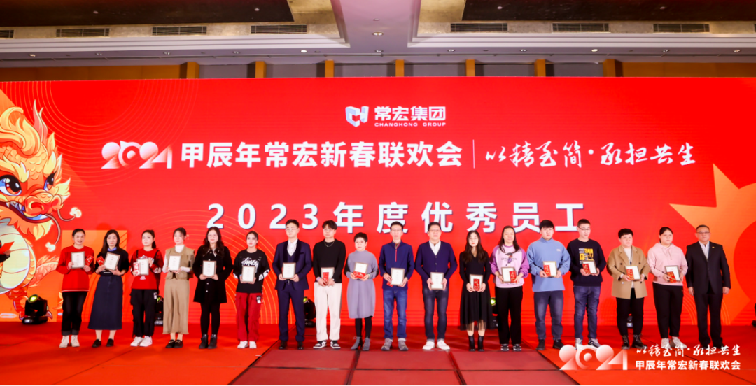 聯(lián)歡會現(xiàn)場,對常宏2023年度優(yōu)秀員工、杰出團(tuán)隊、工齡獎、榮休獎等獎項進(jìn)行了表彰和頒獎,這是對常宏人辛勤付出的認(rèn)可和褒獎,更是對常宏人今后更加努力拼搏的鼓勵!