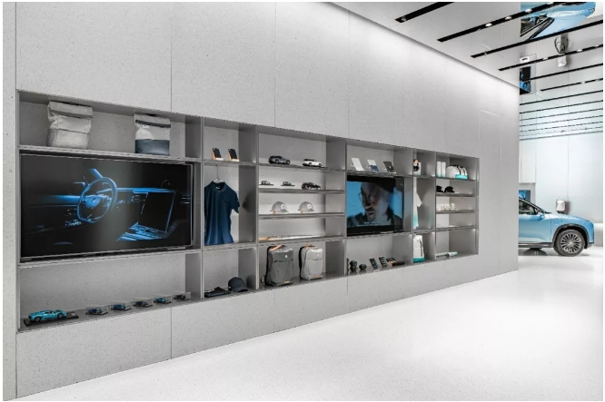 國際莊的NIO House,一份科技感與時尚設(shè)計融合,被分隔開的兩個Gallery區(qū)域,給予人們更寬更廣的展示空間,沉穩(wěn)中又有著跳躍的科技音符。