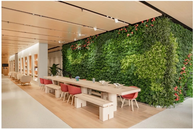 層層疊疊的綠色植物墻和兩面觀景落地窗構(gòu)成了一個獨屬聚會的空間,和朋友們來一場走心的分享吧!