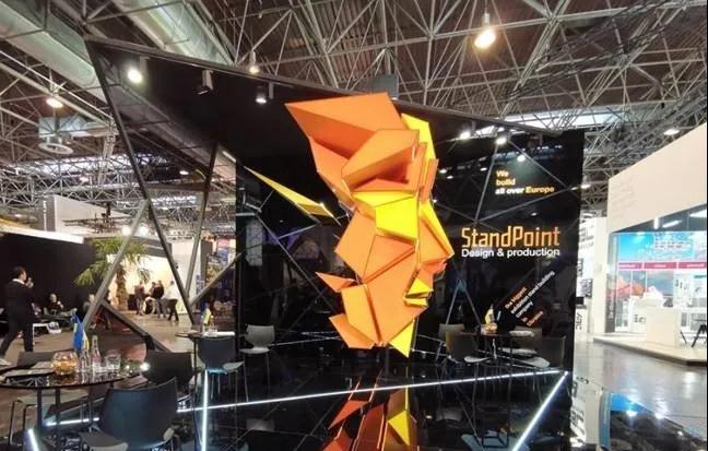 KUNZE這家公司的展區(qū)用線條組成了三個大小不同的圓錐體,圍合而成為洽談區(qū),很有設計公司的“范兒”。
