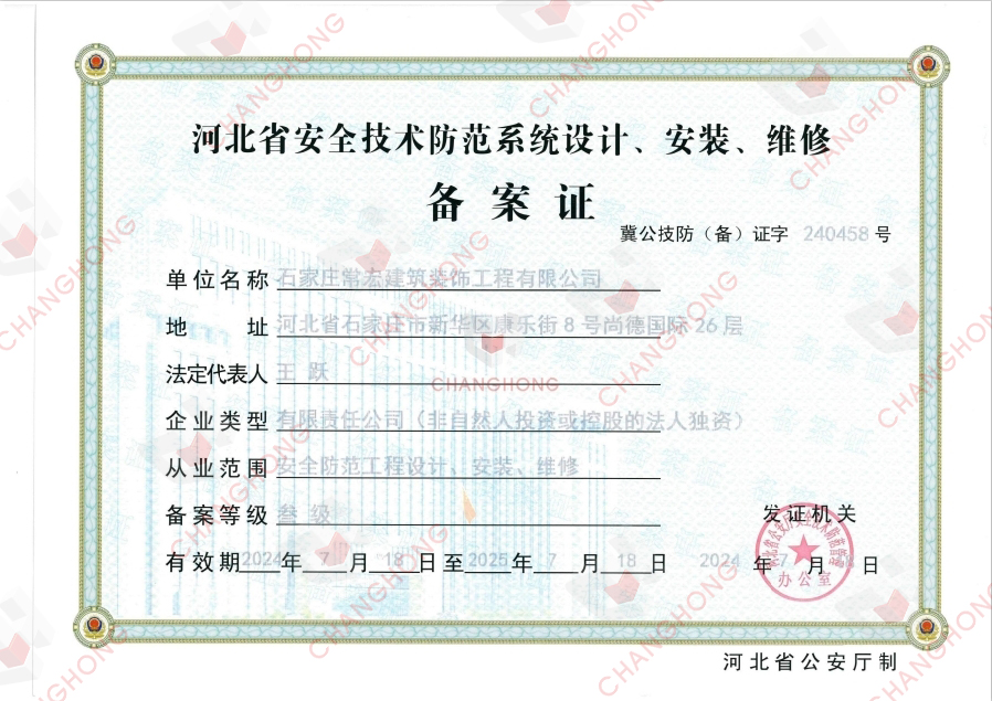 石家莊常宏建筑裝飾工程有限公司,高新技術(shù)企業(yè),擁有建筑裝飾甲級(jí)設(shè)計(jì)、建筑幕墻工程/消防設(shè)施工程設(shè)計(jì)專項(xiàng)乙級(jí)、建筑裝修裝飾工程專業(yè)承包壹級(jí)、建筑工程施工總承包貳級(jí)、幕墻/機(jī)電/鋼結(jié)構(gòu)/消防設(shè)施/鋼結(jié)構(gòu)電子與智能化工程專業(yè)承包貳級(jí)資質(zhì)。